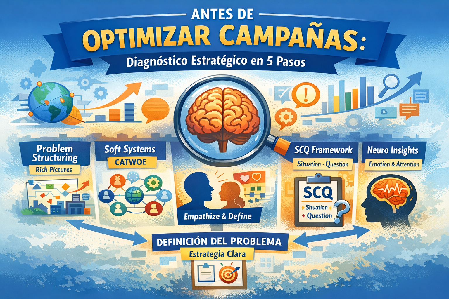 Este artículo propone un marco metodológico de cinco pasos que integra enfoques de investigación operacional, pensamiento sistémico, innovación organizacional y neurociencia del consumidor. El resultado es un proceso que permite pasar de expectativas difusas a problemas estratégicos operacionalizables.