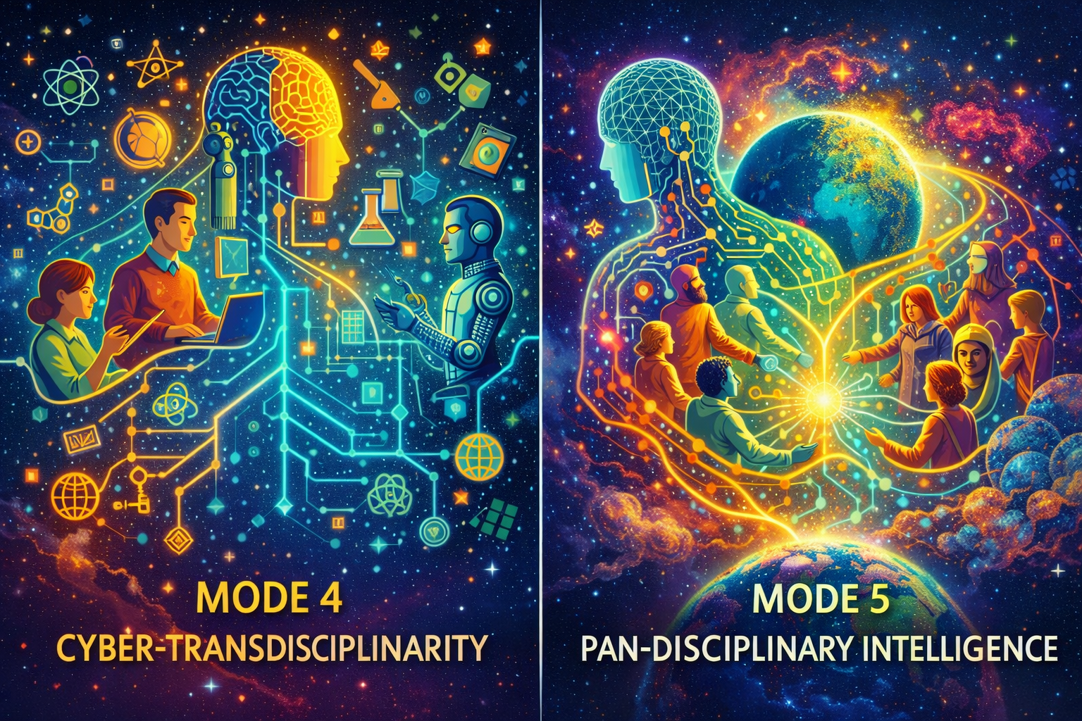 The article concludes by anticipating a speculative Mode 5—pan-disciplinary intelligence—characterized by AGI-facilitated, planetary-scale knowledge integration. It argues that cyber-transdisciplinary competence is not optional, but essential for institutions seeking to adapt responsibly to AGI’s transformative impact on governance, research, and transdisciplinary communication.